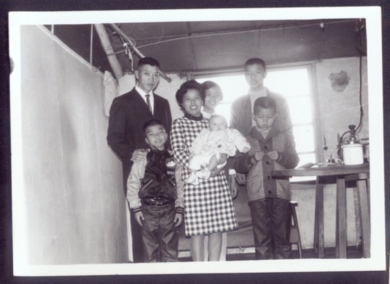 他們在1953年(民42)生了第一個孩子,後來跟著軍隊裡100多位阿兵哥,搬去現在圓山花博旁邊的臨濟護國禪寺屋簷下搭帳篷,建了一個木板床,二、三個孩子就待在床上活動,孩子們很聽話,大姐會盯緊弟弟們,不要掉到床下,她則是忙著洗衣服,主要是做阿兵哥生意,還得打毛線賺錢。
