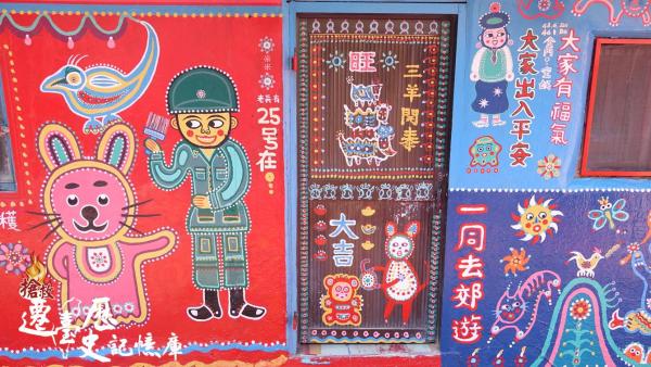來到臺中南屯春安里,一處老舊眷村,巨大字體「彩虹眷村歡迎您」映入眼簾,牆上跟地上到處有著充滿童趣筆觸、色彩豔麗的塗鴉,在四周被現代化高樓吞噬的都市叢林中,形成一方突兀的彩色建築地景。