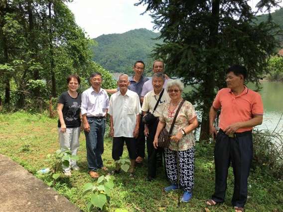羅龍興與黃春妹(前排右三、右二)在廣東蕉嶺家鄉與親友合影
