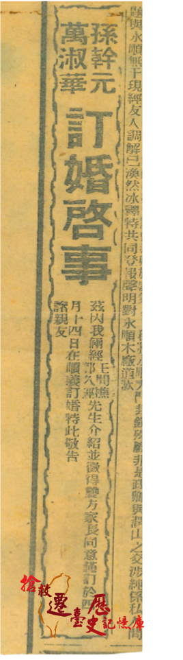 父親孫幹元與母親萬淑華的訂婚啓事