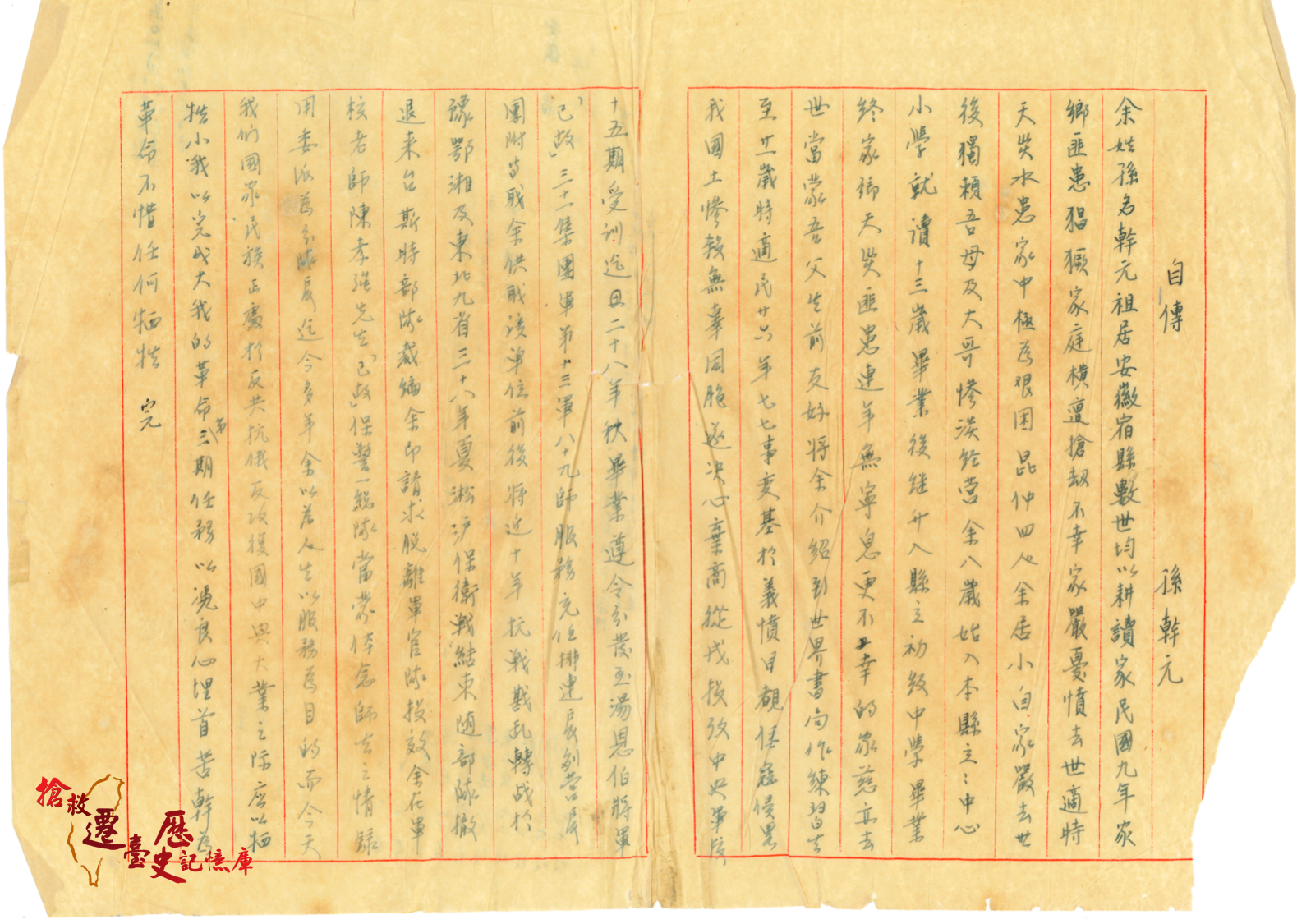 父親孫幹元親筆書寫的自傳