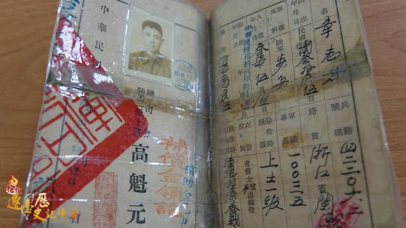 斑駁發黃的陸軍退役令載記老兵章志芳的軍旅生涯。