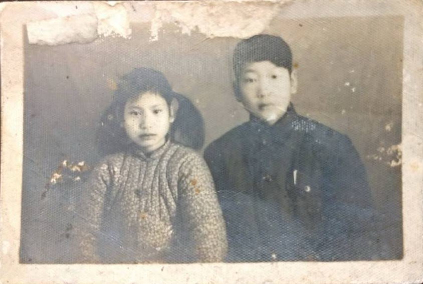 吳秉錟(右)及妹妹吳秀如在家鄉閩候縣洪塘鎮壯元街的光明照相館合影。
