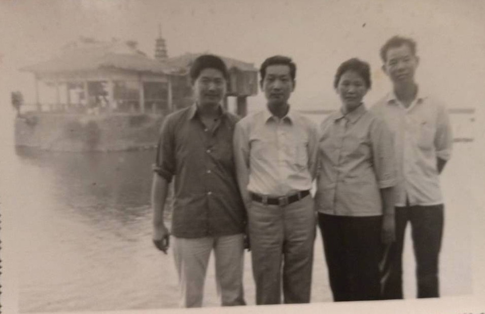 吳秉錟返鄉探親,於兒時戲水的福州金山寺旁合影。