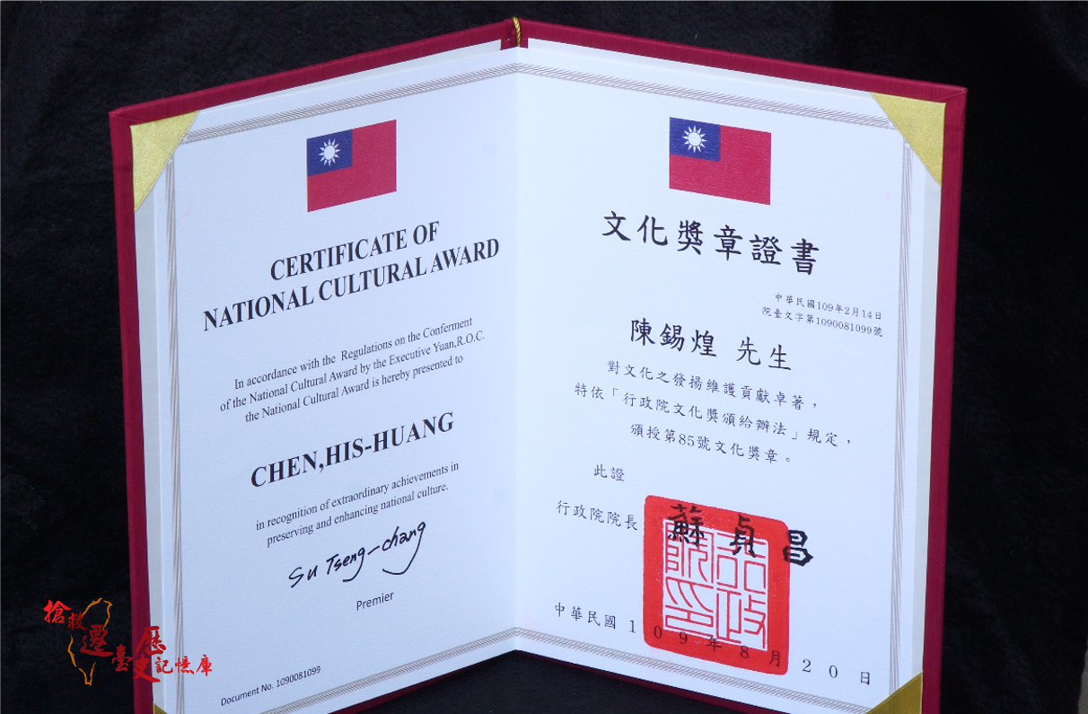 陳錫煌老先生榮獲109年行政院文化獎章