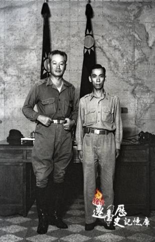 孫立人將軍1954年卸任陸軍總司令前,與攝影官羅超群在陸軍總司令部總司令辦公室合影(羅廣仁提供)